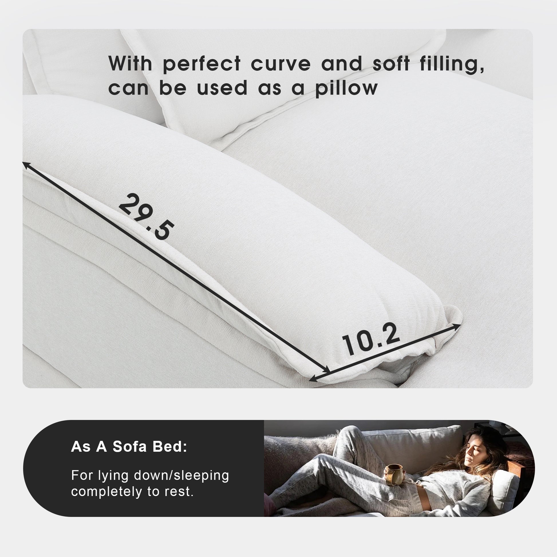 - Comfortable design: The white sofa is made of high-quality chenille, which is soft, comfortable and durable.Armrest pockets on both sides of the sofa can relax your head, and there are also 4 lumbar pillows to give better lumbar support, making it easy to adjust your posture and reduce discomfort and fatigue.