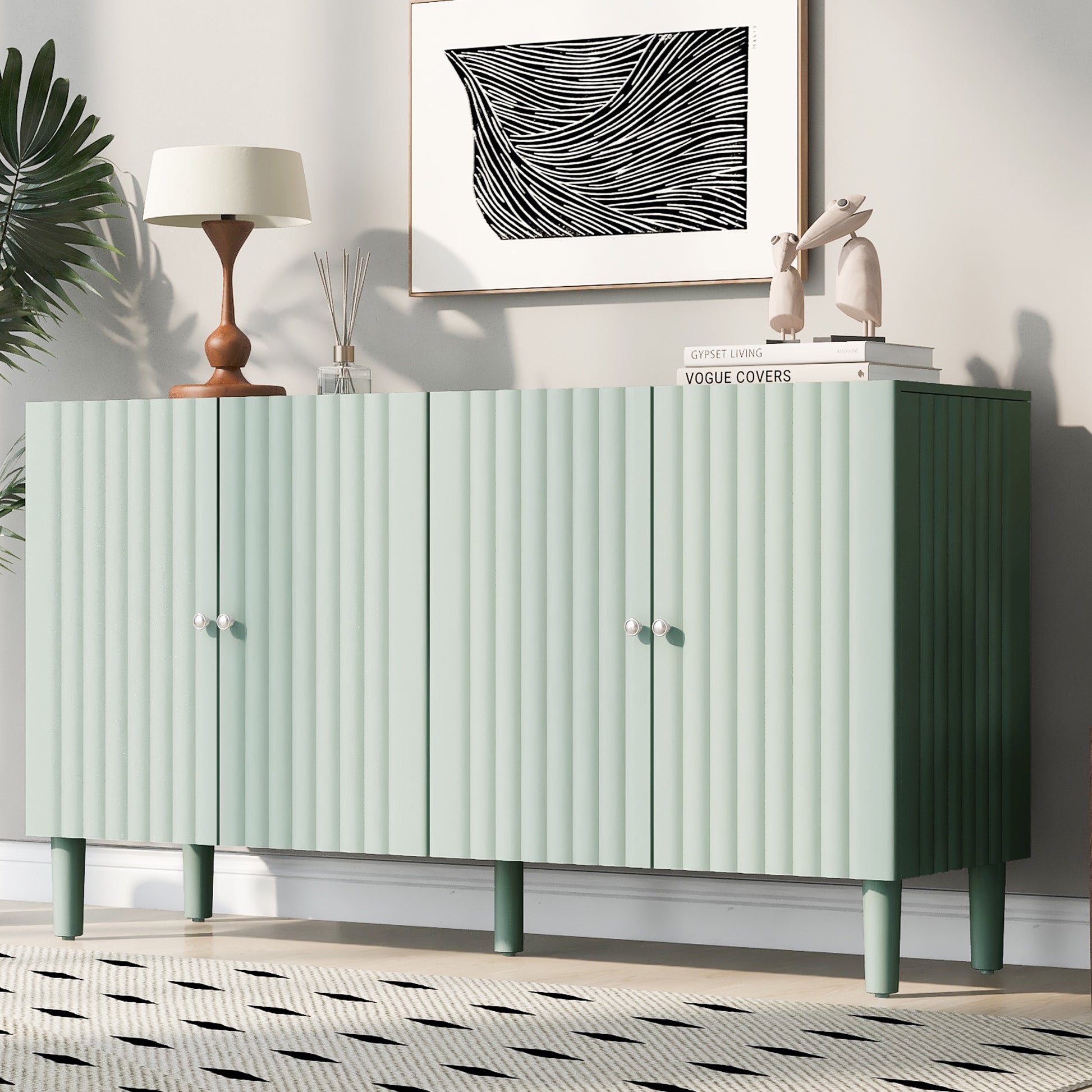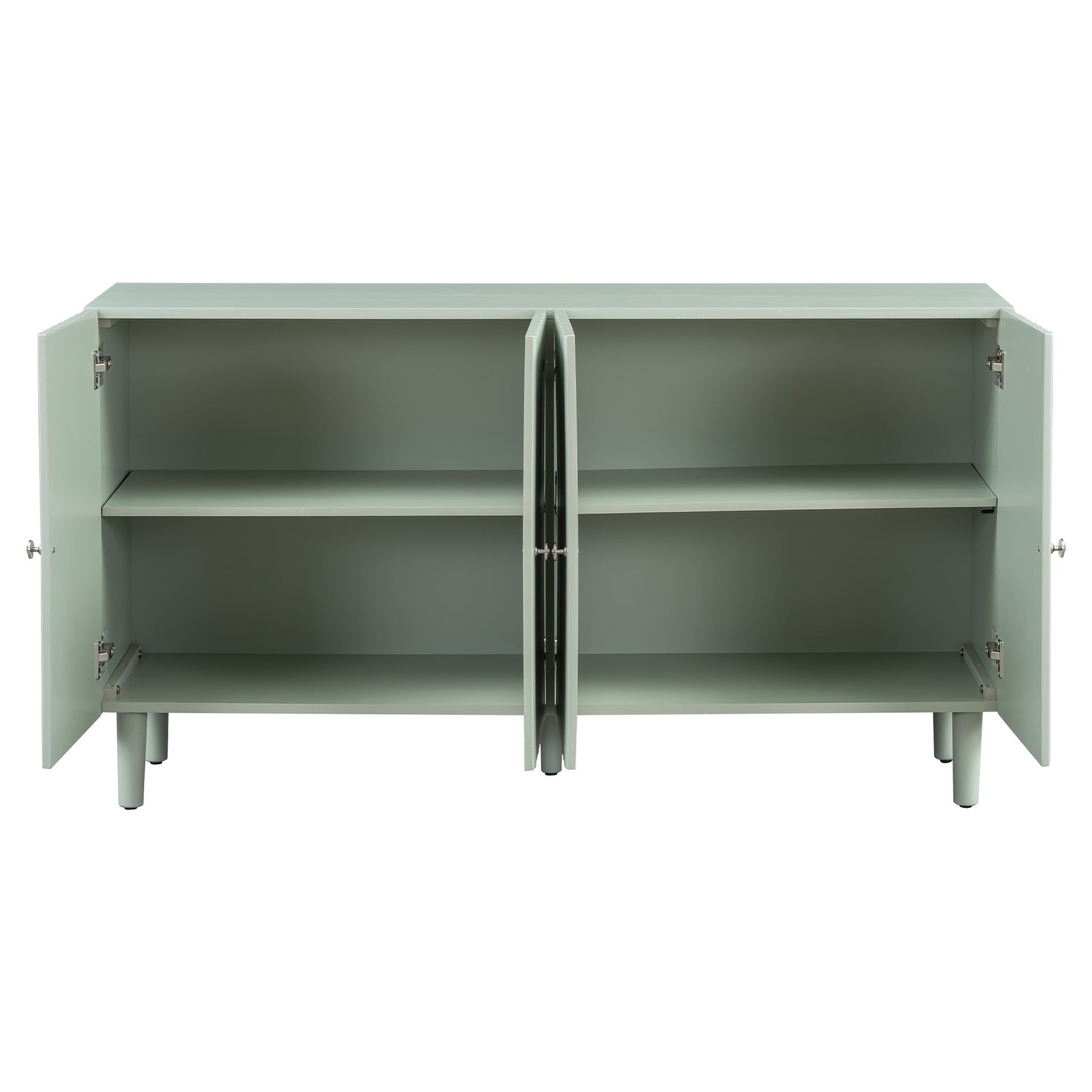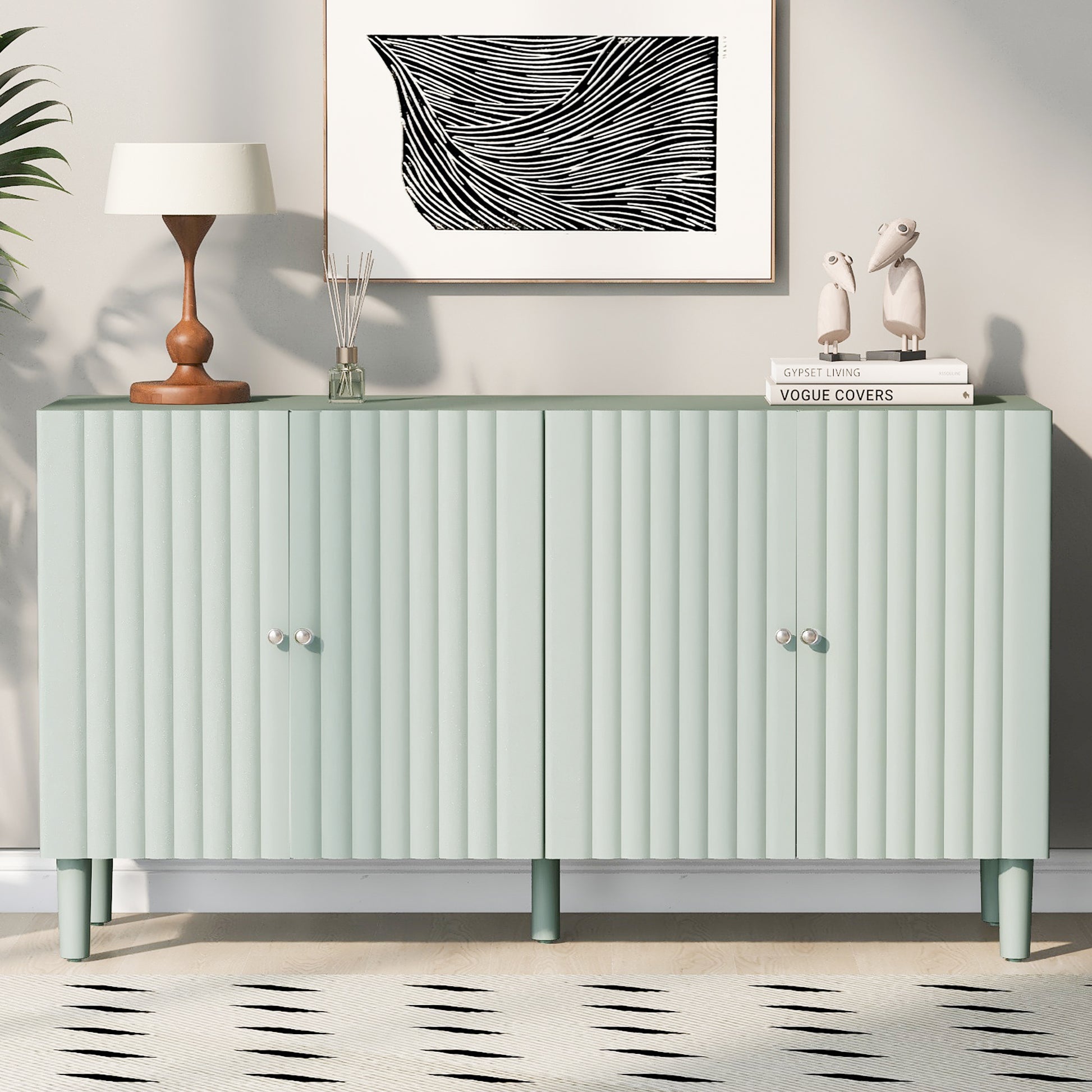 Elegant Four-Door Sideboard with Wavy Pattern Doors, Cylindrical Legs, and Sleek Metal Handles, Adjustable, Suitable for Study, Entryway and Living Room